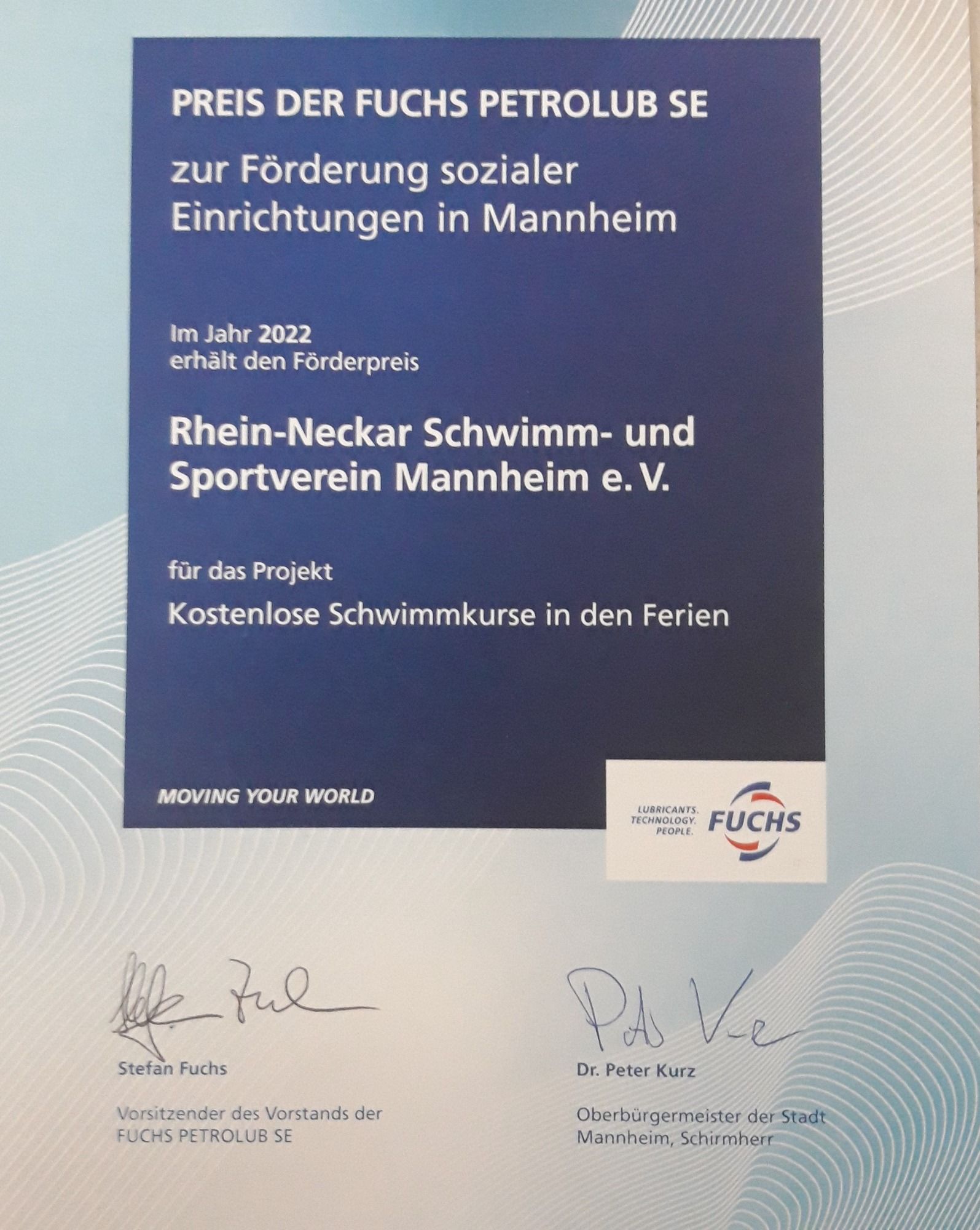 GBG Mannheim sowie von Fuchs Petrolub konnten auch zusätzliche Schwimmkurse kostenlos angeboten werden, für Kinder die nicht in die beiden anderen Fördertöpfe fielen und auch die Schwimmhallenmiete bezahlt werden.
